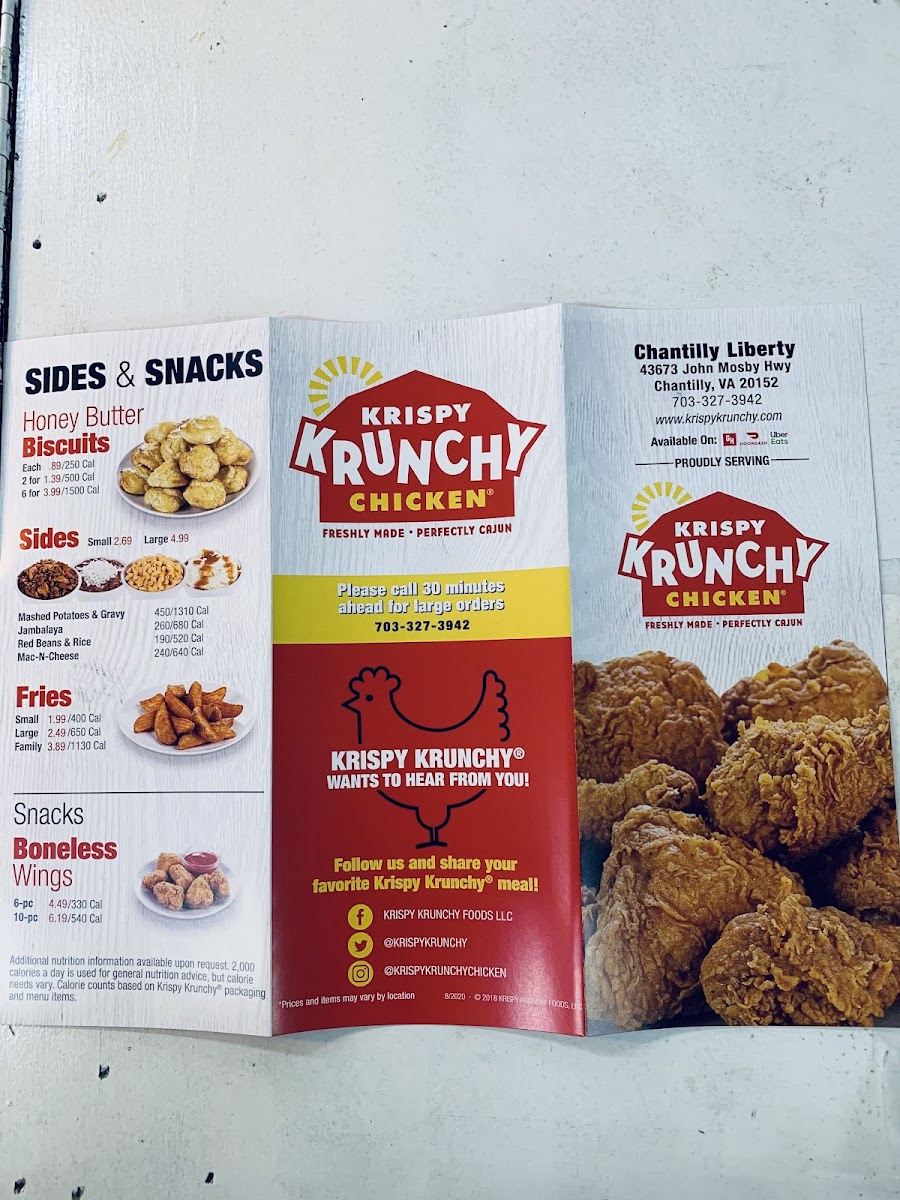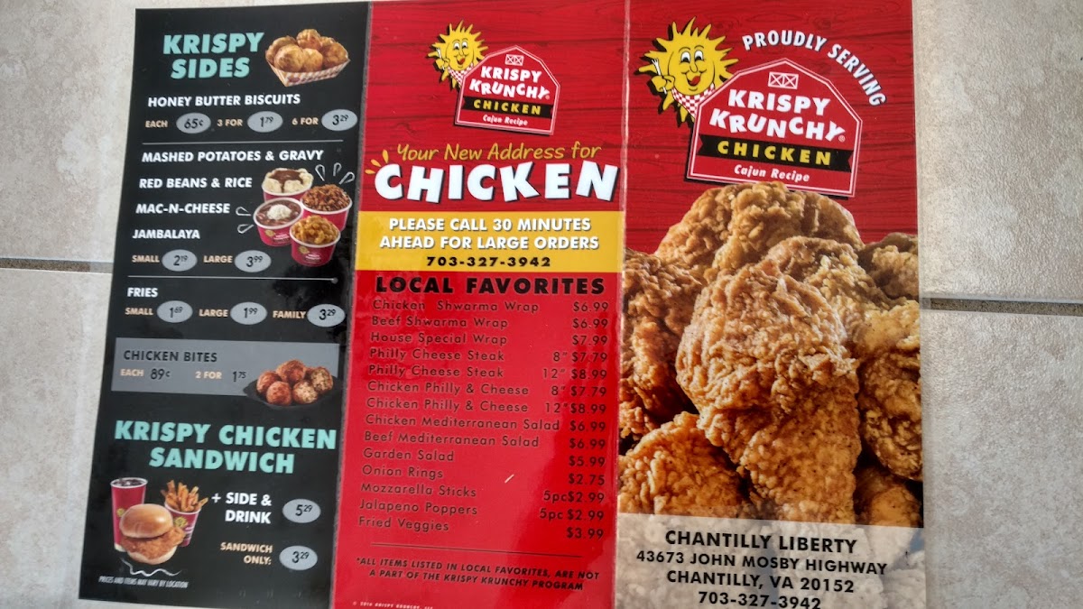 Welcome to Krispy Krunchy Chicken, a hidden gem nestled inside a gas station at 43673 Little River Tpke, Chantilly, VA. This vibrant eatery offers a menu that marries Southern comfort food with unique twists. Their fried chicken is renowned for its crispy, flavorful batter, making it a staple for cravings. Each piece is hand-breaded and cooked to order, ensuring freshness and that homemade feel.